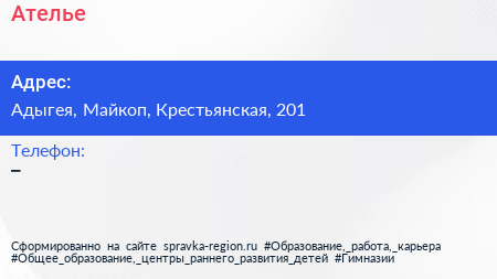 Ателье по адресу Адыгея, Майкоп, Крестьянская, 201 в дальнейшем Организация, размещена в следующих категориях: