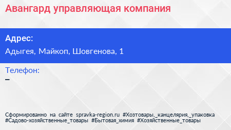 Авангард, управляющая компания по адресу Адыгея, Майкоп, Шовгенова, 1 в дальнейшем Организация, размещена в следующих категориях: