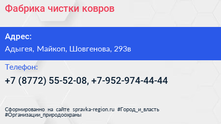 Фабрика чистки ковров по адресу Адыгея, Майкоп, Шовгенова, 293в в дальнейшем Организация, размещена в следующих категориях: