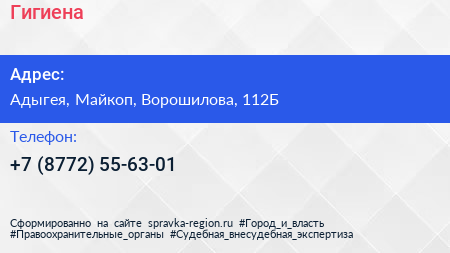 Гигиена по адресу Адыгея, Майкоп, Ворошилова, 112Б в дальнейшем Организация, размещена в следующих категориях: