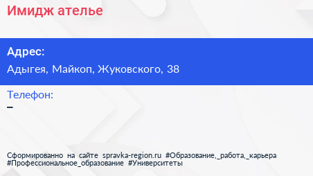 Имидж, ателье по адресу Адыгея, Майкоп, Жуковского, 38 в дальнейшем Организация, размещена в следующих категориях: