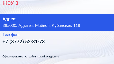 ЖЭУ №3 по адресу 385000, Адыгея, Майкоп, Кубанская, 118 в дальнейшем Организация, размещена в следующих категориях: