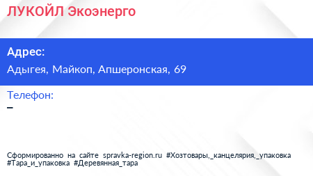 ЛУКОЙЛ-Экоэнерго по адресу Адыгея, Майкоп, Апшеронская, 69 в дальнейшем Организация, размещена в следующих категориях: