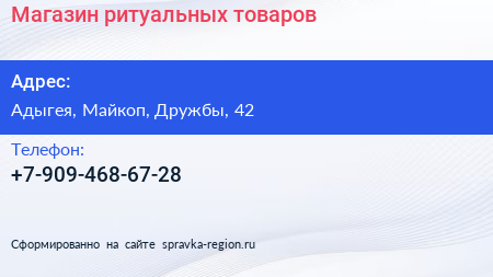Магазин ритуальных товаров по адресу Адыгея, Майкоп, Дружбы, 42 в дальнейшем Организация, размещена в следующих категориях: