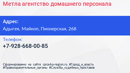 Метла, агентство домашнего персонала по адресу Адыгея, Майкоп, Пионерская, 268 в дальнейшем Организация, размещена в следующих категориях: