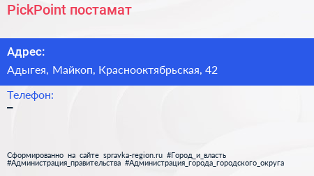 PickPoint, постамат по адресу Адыгея, Майкоп, Краснооктябрьская, 42 в дальнейшем Организация, размещена в следующих категориях: