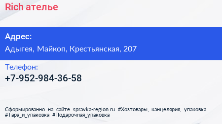Rich, ателье по адресу Адыгея, Майкоп, Крестьянская, 207 в дальнейшем Организация, размещена в следующих категориях: