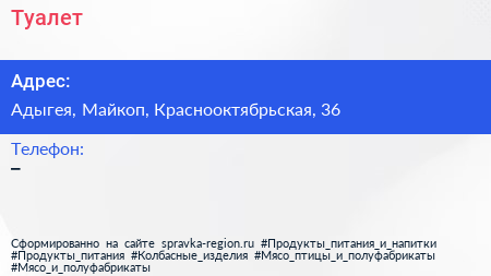 Туалет по адресу Адыгея, Майкоп, Краснооктябрьская, 36 в дальнейшем Организация, размещена в следующих категориях: