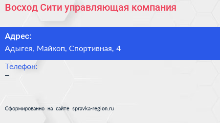 Восход Сити, управляющая компания по адресу Адыгея, Майкоп, Спортивная, 4 в дальнейшем Организация, размещена в следующих категориях: