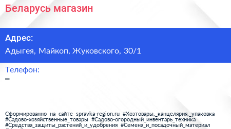 Беларусь, магазин по адресу Адыгея, Майкоп, Жуковского, 30/1 в дальнейшем Организация, размещена в следующих категориях: