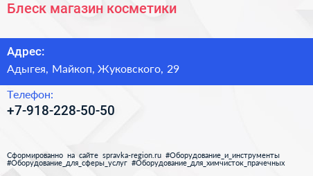 Блеск, магазин косметики по адресу Адыгея, Майкоп, Жуковского, 29 в дальнейшем Организация, размещена в следующих категориях: