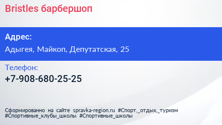 Bristles, барбершоп по адресу Адыгея, Майкоп, Депутатская, 25 в дальнейшем Организация, размещена в следующих категориях: