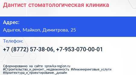 Дантист, стоматологическая клиника по адресу Адыгея, Майкоп, Димитрова, 25 в дальнейшем Организация, размещена в следующих категориях: