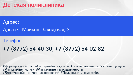 Детская поликлиника по адресу Адыгея, Майкоп, Заводская, 3 в дальнейшем Организация, размещена в следующих категориях: