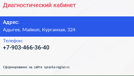 Диагностический кабинет по адресу Адыгея, Майкоп, Курганная, 324 в дальнейшем Организация, размещена в следующих категориях: