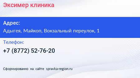 Эксимер, клиника по адресу Адыгея, Майкоп, Вокзальный переулок, 1 в дальнейшем Организация, размещена в следующих категориях: