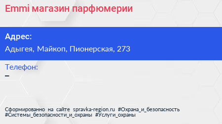 Emmi, магазин парфюмерии по адресу Адыгея, Майкоп, Пионерская, 273 в дальнейшем Организация, размещена в следующих категориях: