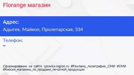 Florange, магазин по адресу Адыгея, Майкоп, Пролетарская, 334 в дальнейшем Организация, размещена в следующих категориях: