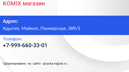 KOMIX, магазин по адресу Адыгея, Майкоп, Пионерская, 389/1 в дальнейшем Организация, размещена в следующих категориях: