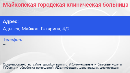 Майкопская городская клиническая больница по адресу Адыгея, Майкоп, Гагарина, 4/2 в дальнейшем Организация, размещена в следующих категориях: