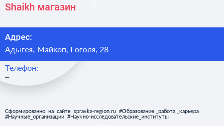 Shaikh, магазин по адресу Адыгея, Майкоп, Гоголя, 28 в дальнейшем Организация, размещена в следующих категориях: