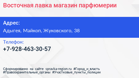 Восточная лавка, магазин парфюмерии по адресу Адыгея, Майкоп, Жуковского, 38 в дальнейшем Организация, размещена в следующих категориях: