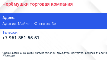 Черёмушки, торговая компания по адресу Адыгея, Майкоп, Юннатов, 3е в дальнейшем Организация, размещена в следующих категориях: