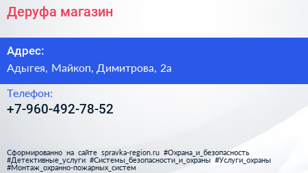 Деруфа, магазин по адресу Адыгея, Майкоп, Димитрова, 2а в дальнейшем Организация, размещена в следующих категориях: