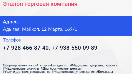 Эталон, торговая компания по адресу Адыгея, Майкоп, 12 Марта, 169/1 в дальнейшем Организация, размещена в следующих категориях: