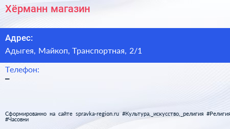 Хёрманн, магазин по адресу Адыгея, Майкоп, Транспортная, 2/1 в дальнейшем Организация, размещена в следующих категориях: