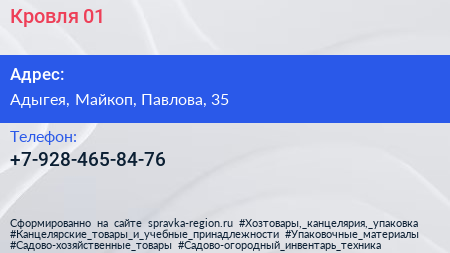 Кровля 01 по адресу Адыгея, Майкоп, Павлова, 35 в дальнейшем Организация, размещена в следующих категориях: