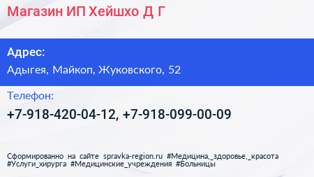 Магазин, ИП Хейшхо Д.Г. по адресу Адыгея, Майкоп, Жуковского, 52 в дальнейшем Организация, размещена в следующих категориях: