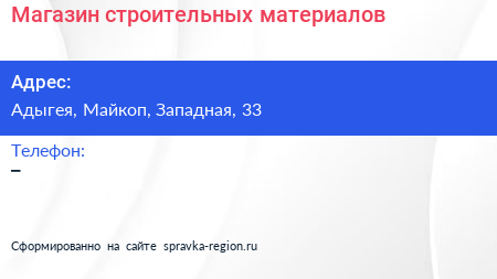 Магазин строительных материалов по адресу Адыгея, Майкоп, Западная, 33 в дальнейшем Организация, размещена в следующих категориях: