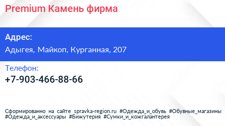 Premium Камень, фирма по адресу Адыгея, Майкоп, Курганная, 207 в дальнейшем Организация, размещена в следующих категориях: