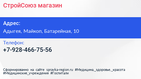 СтройСоюз, магазин по адресу Адыгея, Майкоп, Батарейная, 10 в дальнейшем Организация, размещена в следующих категориях:
