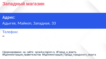 Западный, магазин по адресу Адыгея, Майкоп, Западная, 33 в дальнейшем Организация, размещена в следующих категориях: