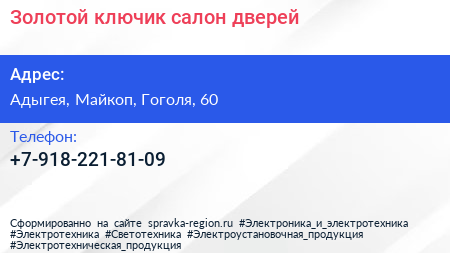 Золотой ключик, салон дверей по адресу Адыгея, Майкоп, Гоголя, 60 в дальнейшем Организация, размещена в следующих категориях: