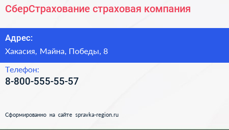 СберСтрахование, страховая компания по адресу Хакасия, Майна, Победы, 8 в дальнейшем Организация, размещена в следующих категориях:
