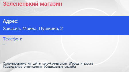 Зелененький, магазин по адресу Хакасия, Майна, Пушкина, 2 в дальнейшем Организация, размещена в следующих категориях: