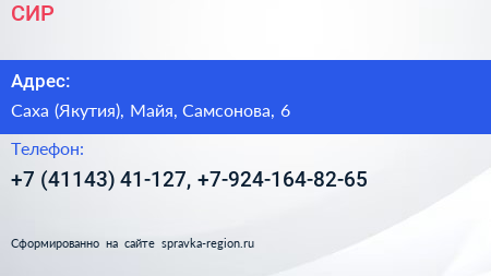 СИР по адресу Саха (Якутия), Майя, Самсонова, 6 в дальнейшем Организация, размещена в следующих категориях: