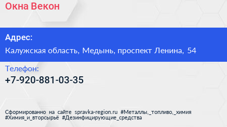 Окна Векон по адресу Калужская область, Медынь, проспект Ленина, 54 в дальнейшем Организация, размещена в следующих категориях: