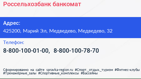 Россельхозбанк, банкомат по адресу 425200, Марий Эл, Медведево, Медведево, 32 в дальнейшем Организация, размещена в следующих категориях: