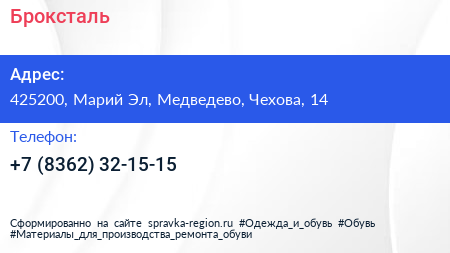 Броксталь по адресу 425200, Марий Эл, Медведево, Чехова, 14 в дальнейшем Организация, размещена в следующих категориях: