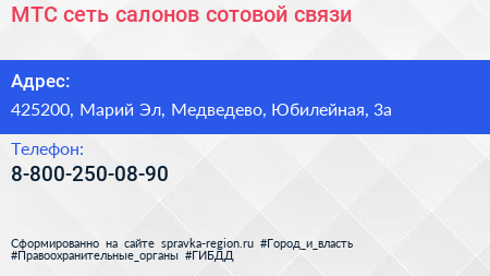 МТС, сеть салонов сотовой связи по адресу 425200, Марий Эл, Медведево, Юбилейная, 3а в дальнейшем Организация, размещена в следующих категориях: