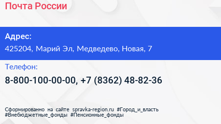 Почта России по адресу 425204, Марий Эл, Медведево, Новая, 7 в дальнейшем Организация, размещена в следующих категориях: