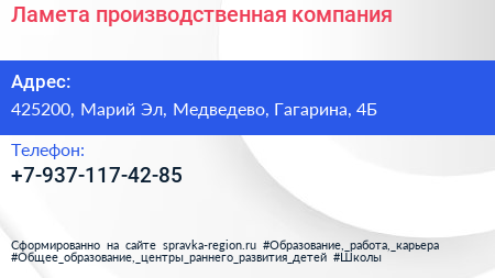 Ламета, производственная компания по адресу 425200, Марий Эл, Медведево, Гагарина, 4Б в дальнейшем Организация, размещена в следующих категориях: