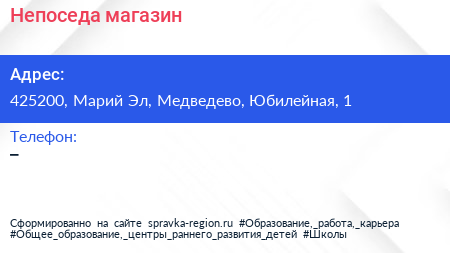 Непоседа, магазин по адресу 425200, Марий Эл, Медведево, Юбилейная, 1 в дальнейшем Организация, размещена в следующих категориях: