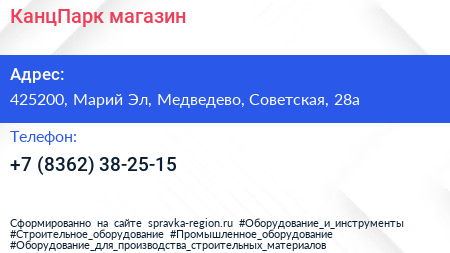 КанцПарк, магазин по адресу 425200, Марий Эл, Медведево, Советская, 28а в дальнейшем Организация, размещена в следующих категориях: