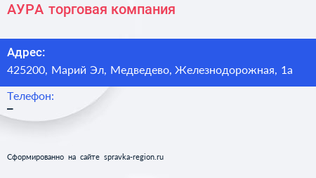 АУРА, торговая компания по адресу 425200, Марий Эл, Медведево, Железнодорожная, 1а в дальнейшем Организация, размещена в следующих категориях: