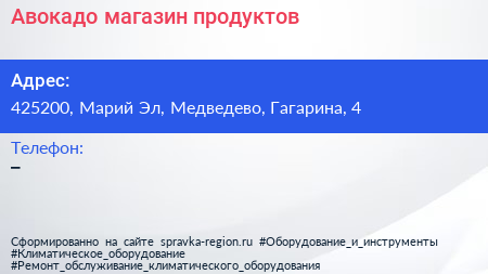 Авокадо, магазин продуктов по адресу 425200, Марий Эл, Медведево, Гагарина, 4 в дальнейшем Организация, размещена в следующих категориях:
